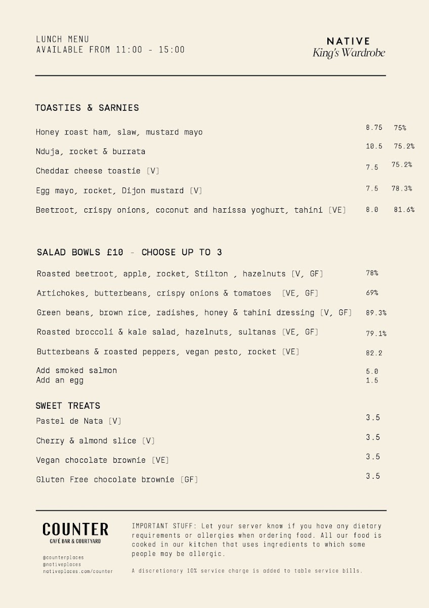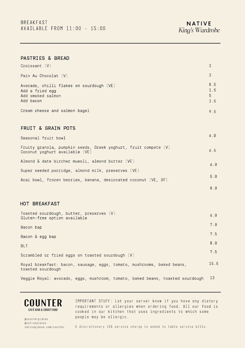 For inquiries or to plan your next visit, you can reach them at +44 20 7313 3886. Counter King's Wardrobe is ready to welcome you into their world of delicious discoveries!